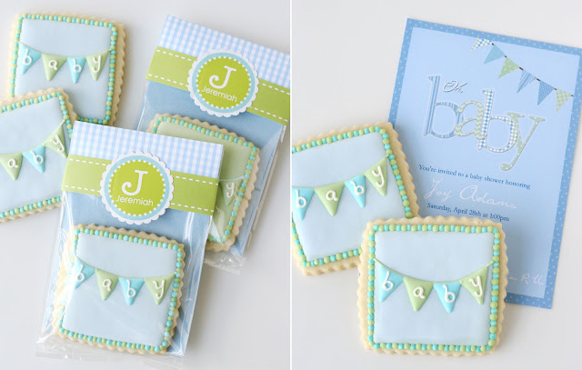 Earlier this week, I share the photos from the Vintage Bunting Baby Shower I recently hosted for my sister. I made quite a few decorated sugar cookies for the shower... some to enjoy during the party and some for the guests to take home as a little treat.
